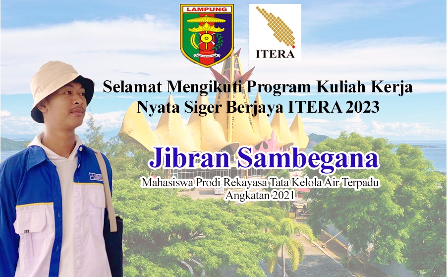 Mahasiswa Prodi Rekayasa Tata Kelola Air Terpadu (TKA), Jibran Sambegana) berkesempatan untuk dapat mengikuti Program Kuliah Kerja Nyata (KKN), Siger Berjaya yang telah disepakati oleh ITERA dan empat kampus lainnya di Provinsi Lampung. Pada kegiatan ini, mahasiswa peserta KKN nantinya membawa usulan program kerja masing-masing yang akan diterapkan di daerah khusunya pedesaan. Jibran Sambegana bersama dengan 9 orang mahasiswa dari beberapa prodi di ITERA akan melaksanakan kegiatan ini dari tanggal 26 Juni s.d. 4 Agustus 2023 di Kecamatan Teluk Pandan Kabupaten Pesawaran.